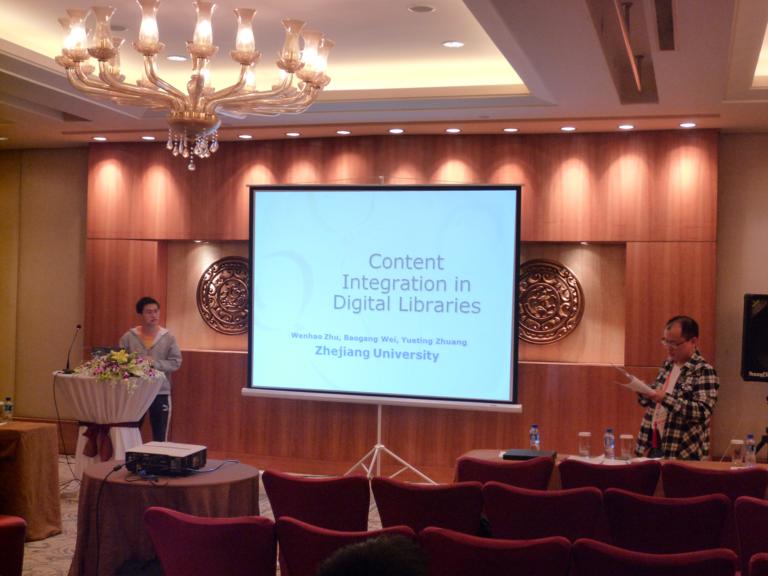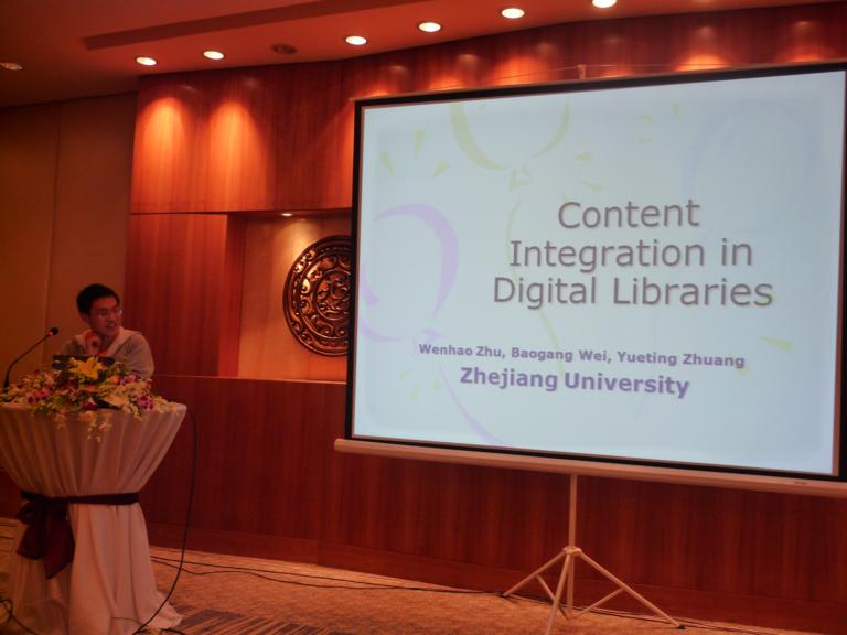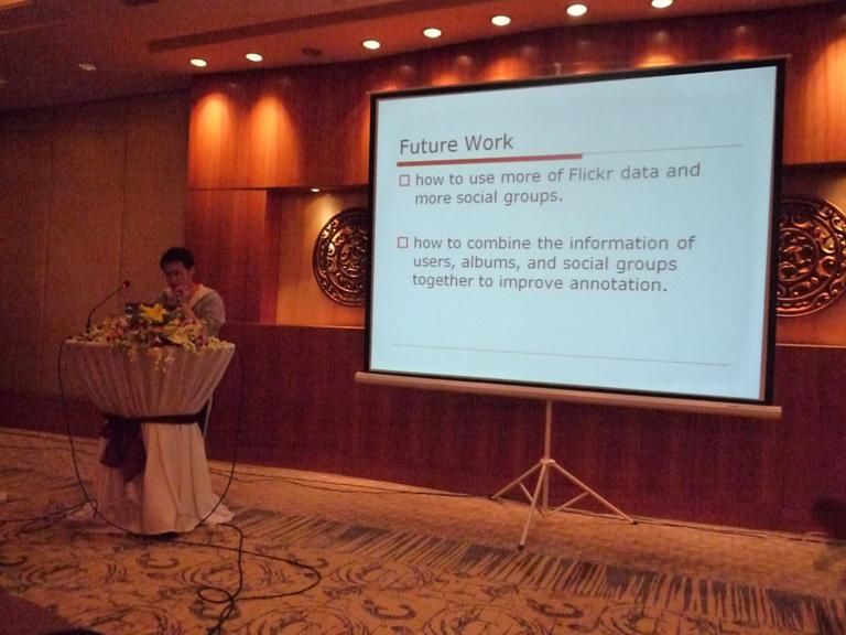 Mr. Yi Yang, Zhejiang University, then gave a presentation on "Content Integration in Digital Libraries". He then presented another paper "Automatic Annotation of Weakly-Tagged Social Images on Flickr Using Latent Topic Discovery of Multiple Groups" for his colleague who could not make it to the workshop.